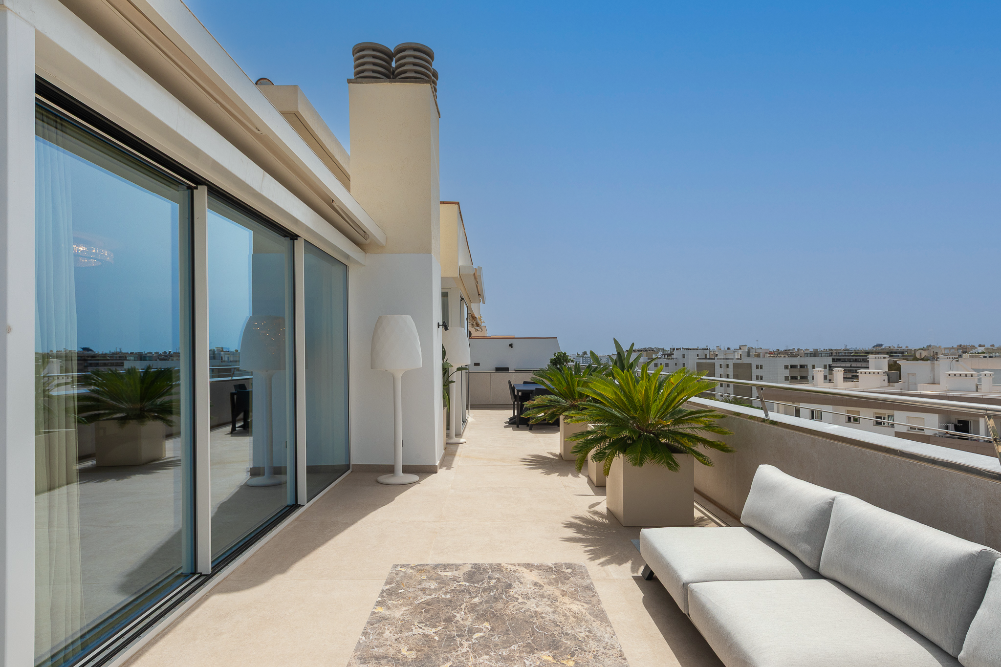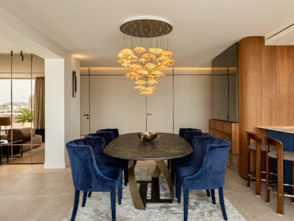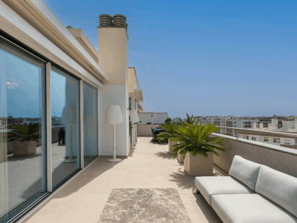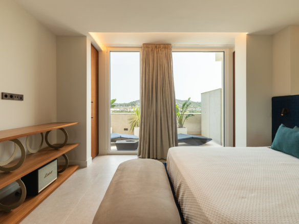 Dit eigentijdse en elegante penthouse bevindt zich in het Portamar-gebouw in Marina Botafoch, een van de meest exclusieve en gewilde gebieden van Ibiza. Het is ontworpen als een ruimte die luxe, comfort en een prachtig uitzicht combineert, door drie toonaangevende studio’s: Martinuzzi (Zwitserland) – design specialisten, RGS (A Coruña) – maatwerk timmerwerk, en The Room Studio (Barcelona) – interieurontwerp en decoratie, winnaar van meerdere Europese prijzen.